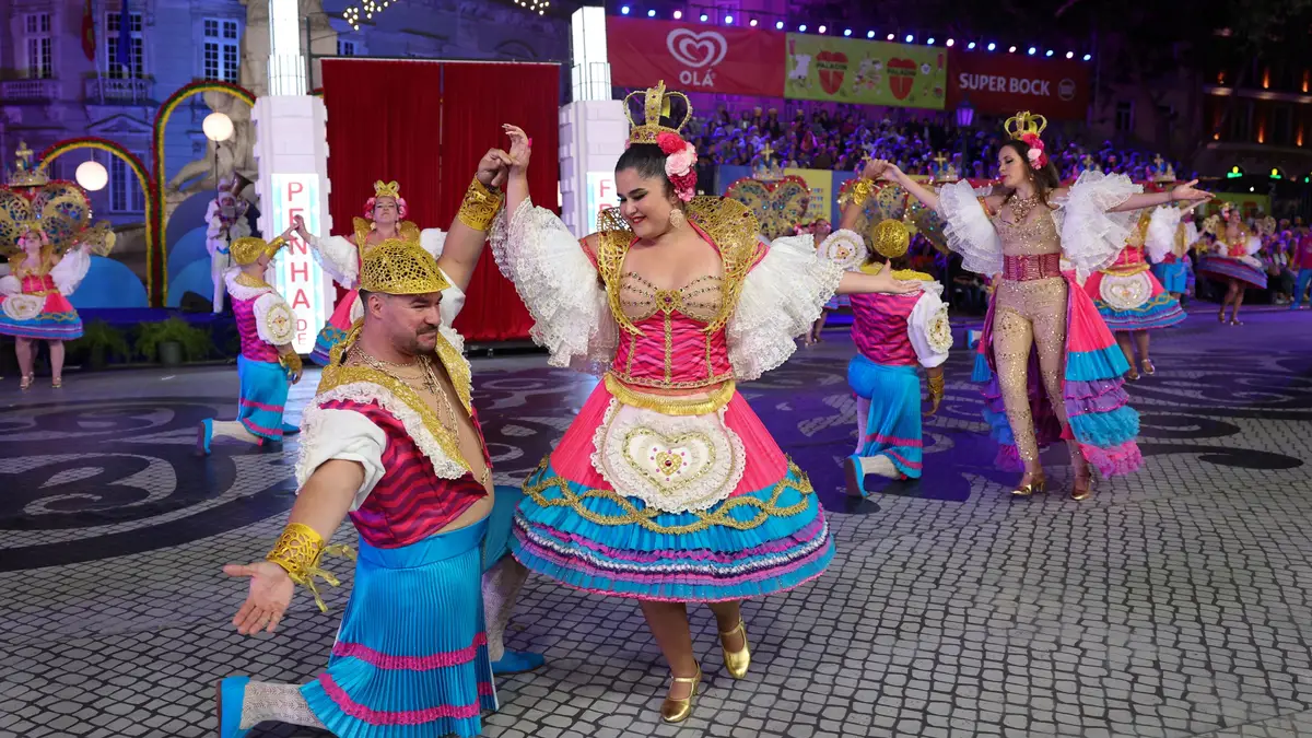 Também os casais de Santo António desceram a avenida: antes da partida para a lua de mel, trocaram a valsa nupcial pelas marchas populares.