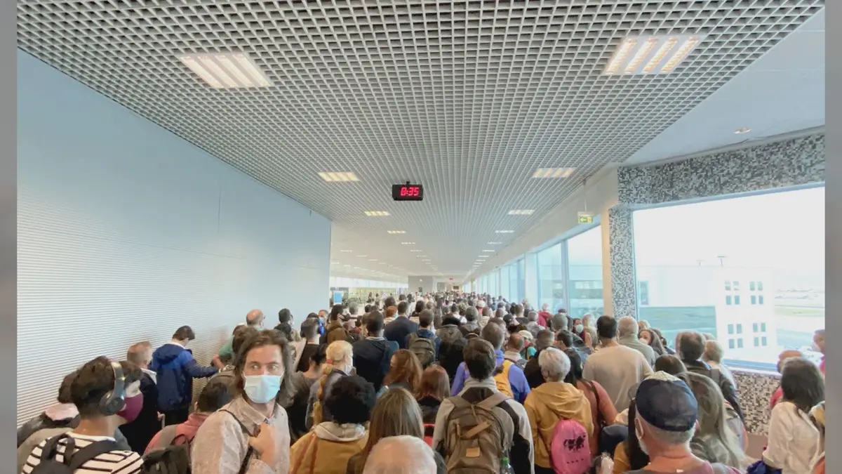 Mil e quatrocentas pessoas acumularam-se este domingo, sem distancimento físico, na zona do controlo sanitário do aeroporto de Lisboa.