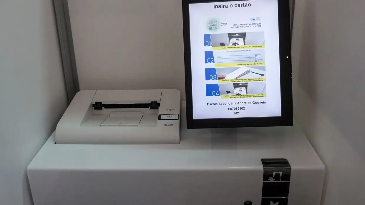 Um protesto, os votos eletrónicos e os boletins em braille.
