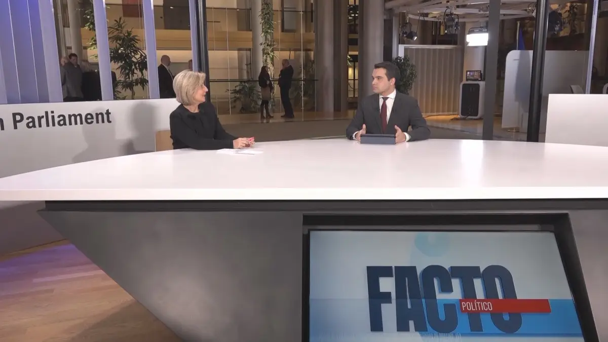 O Facto Político desta semana foi gravado no Parlamento Europeu no dia em que Marcelo Rebelo de Sousa participou, com o Rei de Espanha, numa sessão comemorativa dos 40 anos de Portugal e Espanha à União Europeia.