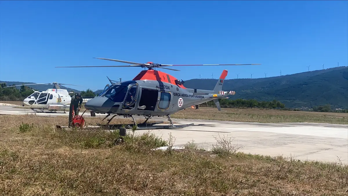 A bordo, um piloto e um operacional da força especial de Proteção Civil do grupo de análise e uso de fogo.