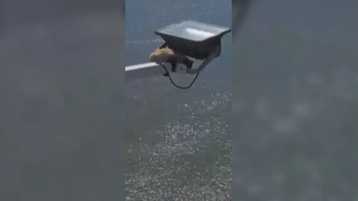 Um gato que estava preso numa haste de iluminação do tabuleiro mais alto da ponte Vasco da Gama foi resgatado com vida na segunda-feira.