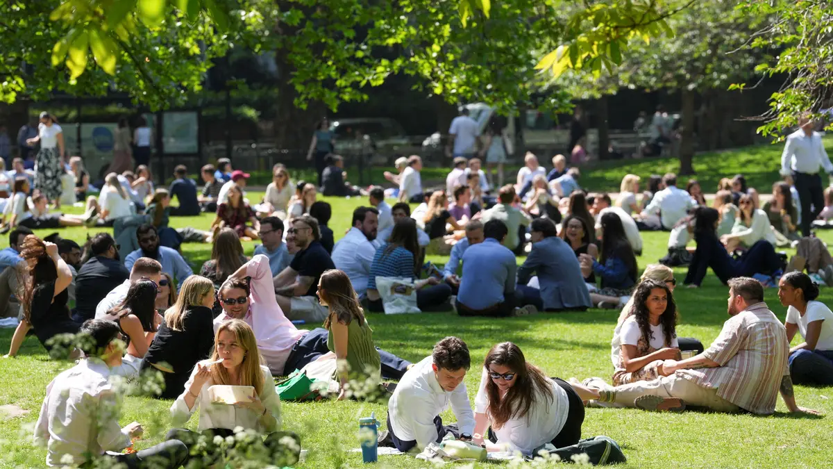O ambiente é próprio de um dia de verão, que chegou mais cedo à capital britânica. Os termómetros já atingem os 27 graus, com previsões a apontar para os 30, em pleno início de maio.