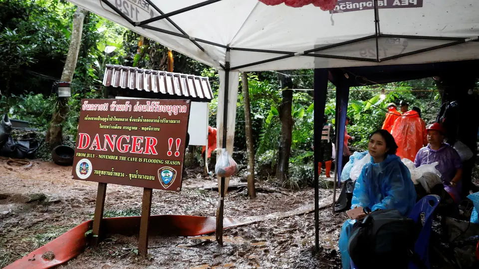 Os rapazes, de 11 a 16 anos, e o seu treinador, de 25 anos, entraram na caverna Tham Luang Nang Non depois de uma partida de futebol no sábado à tarde, mas chuvas quase constantes desde então impediram as operações de resgate.