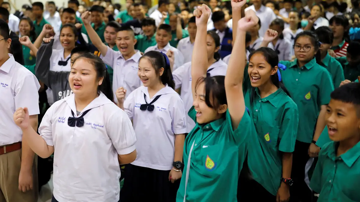A notícia do resgate do grupo de rapazes que esteve preso numa gruta na Tailândia foi recebida em festa na escola frequentada pelos jovens. Durante as duas semanas, os colegas juntaram-se todos os dias para rezar.