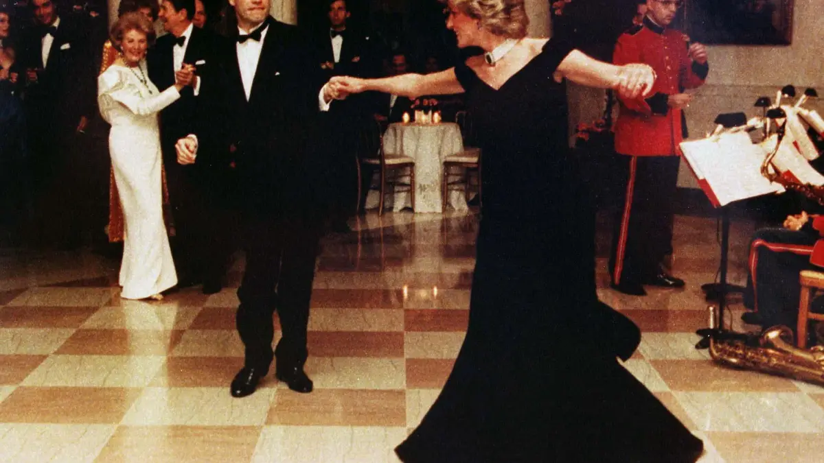 Vestido que usou para dançar com John Travolta na Casa Branca, em Washington, em 1985.