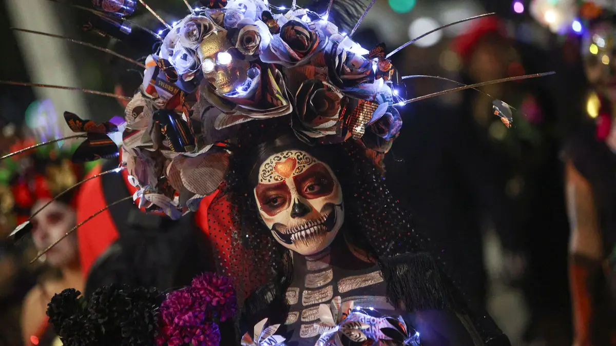 As ruas da Cidade do México ganharam vida na noite de domingo, 22 de outubro, quando centenas de esqueletos desfilaram na avenida principal da capital nas festividades do Dia dos Mortos.