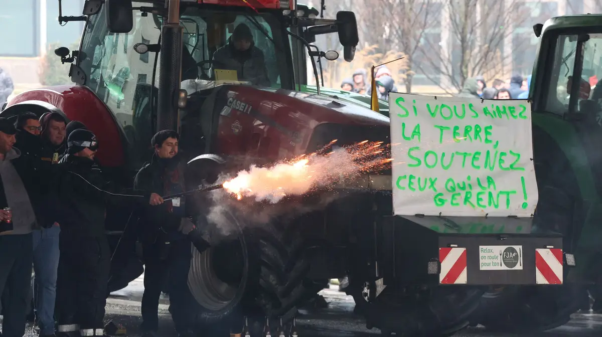 A manifestação ocorre no mesmo dia em que os ministros da Agricultura dos 27 Estados-membros estão reunidos a poucos metros dos manifestantes.