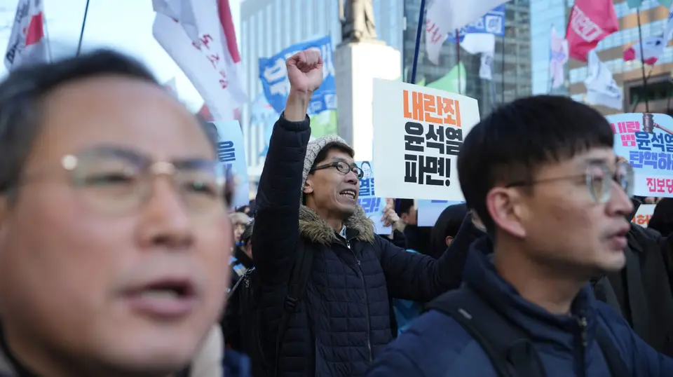 Há esta manhã duas grandes manifestações na Coreia do Sul, uns apoiam o Presidente, outros pedem a destituição de Yoon, que é votada este sábado no Parlamento.
