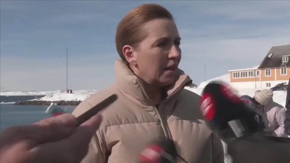 "Precisamos de estar juntos nestes tempos difíceis em que a Gronelândia se encontra. E quando a Gronelândia está numa situação difícil, o mesmo acontece com o Reino da Dinamarca e a Europa", declarou a chefe do Governo de Copenhaga.