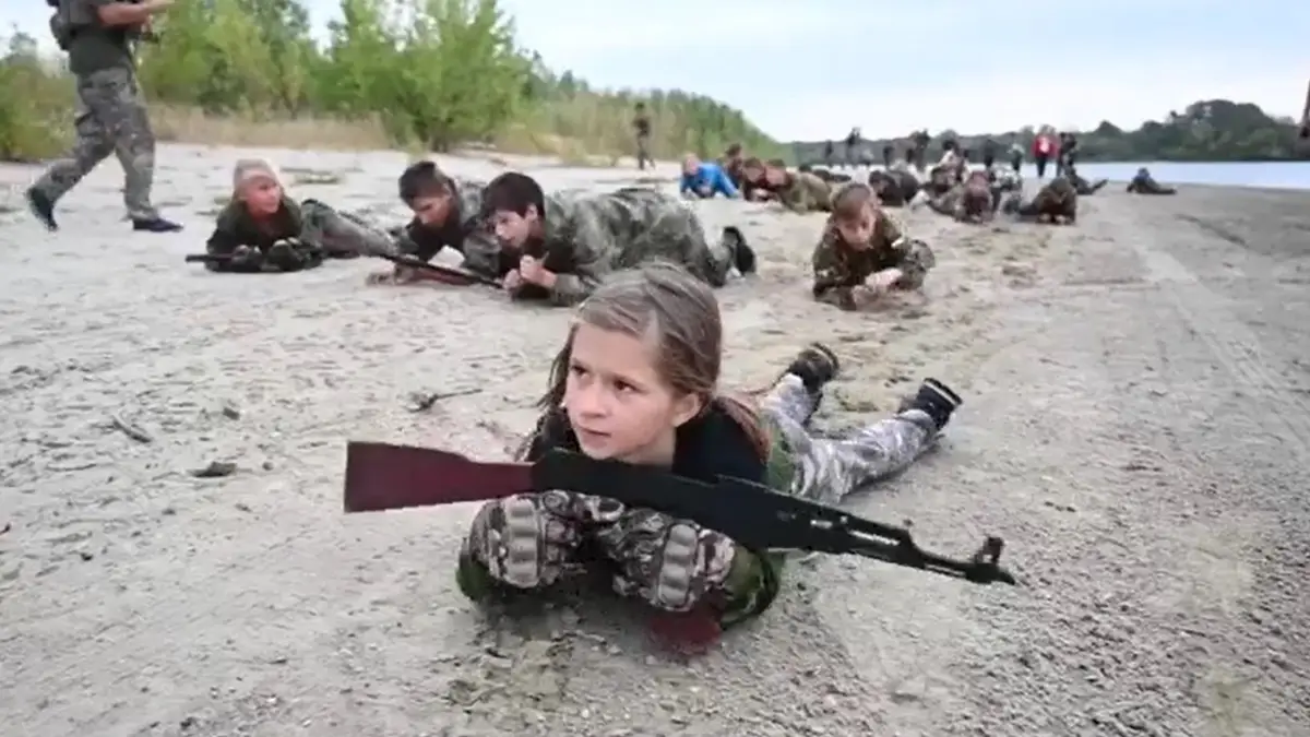 O treino é feito nas margens do rio Don, no sul da Rússia e junto à fronteira com a Ucrânia. São crianças, dos oito aos 17 anos, instruídas por soldados russos.