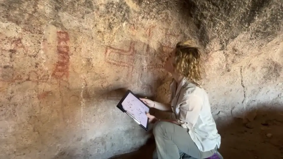 Guadalupe Romero Villanueva, autora da pesquisa publicada na revista Science Advances, disse que a descoberta indica que a arte rupestre começou na caverna Huenul 1 há aproximadamente 8.000 anos e que a prática de pintar aquele padrão específico durou pelo menos 3.000 anos.