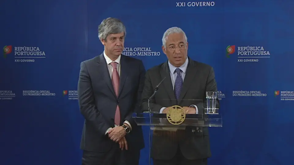 31 de março de 2017, conferência de imprensa de António Costa e Mário Centeno para anunciar a venda do Novo Banco. O primeiro-ministro disse: "não há encargos para os contribuintes".