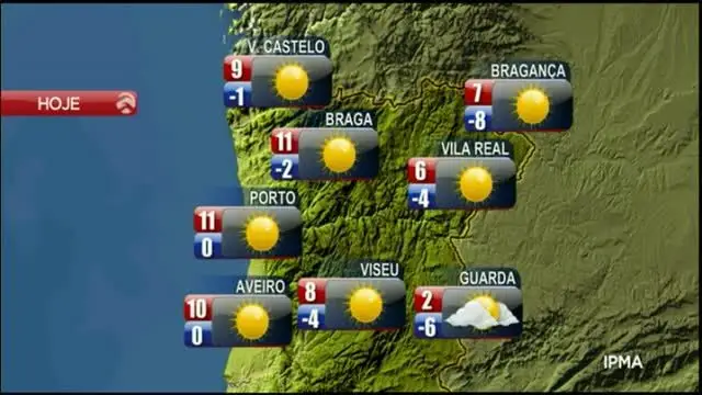 O IPMA prevê para esta quinta-feira no continente tempo frio com céu pouco nublado ou limpo, apresentando períodos de maior nebulosidade na região Sul, em especial no interior e possibilidade de ocorrência de aguaceiros fracos no interior da região Sul que poderão ser de neve até ao início da manhã.