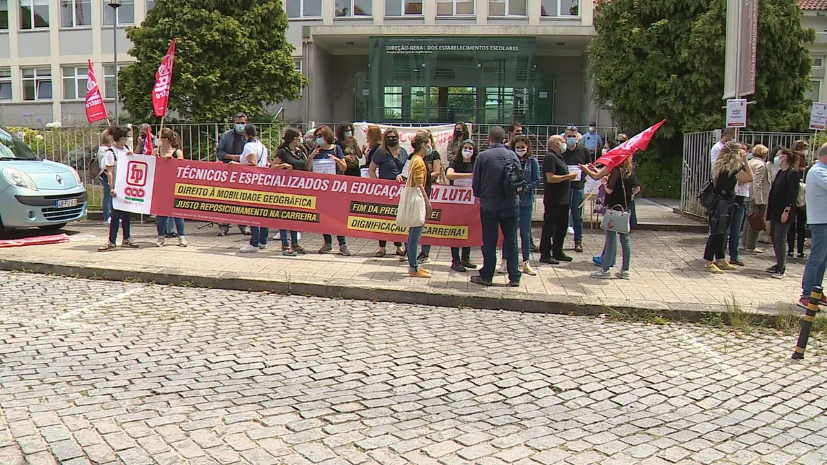 Cerca de quatro dezenas de técnicos especializados da educação estiveram esta terça-feira de manhã em frente à Direção-Geral dos Estabelecimentos Escolares, no Porto.