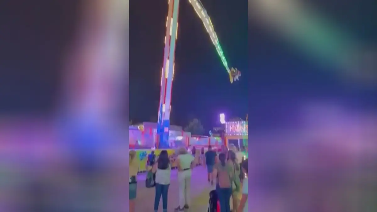 O alerta para o incidente foi dado por volta das 21:00 desta quinta-feira. Sete pessoas ficaram presas quando o braço mecânico da diversão ficou bloqueado.