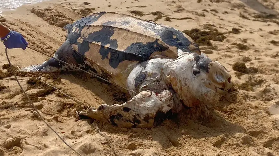 Uma tartaruga morta, com cerca de 1,85 metros e 300 quilos, deu à costa, nesta terça-feira, na praia de Alvor, em Portimão, segundo explicou, à SIC Notícias, Guilherme Mafra de Freitas, um dos nadadores-salvadores responsáveis pela retirada do animal.