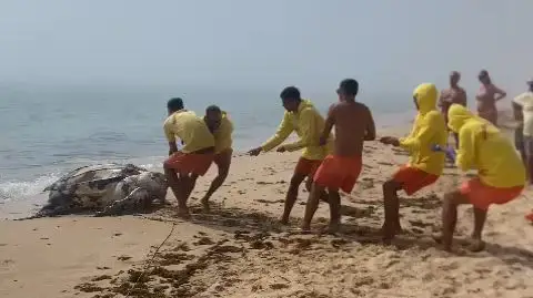 A retirada da tartaruga-de-couro aconteceu por volta das 15 horas e foram necessários seis nadadores-salvadores “por causa do peso" do animal, contou ainda o nadador-salvador.