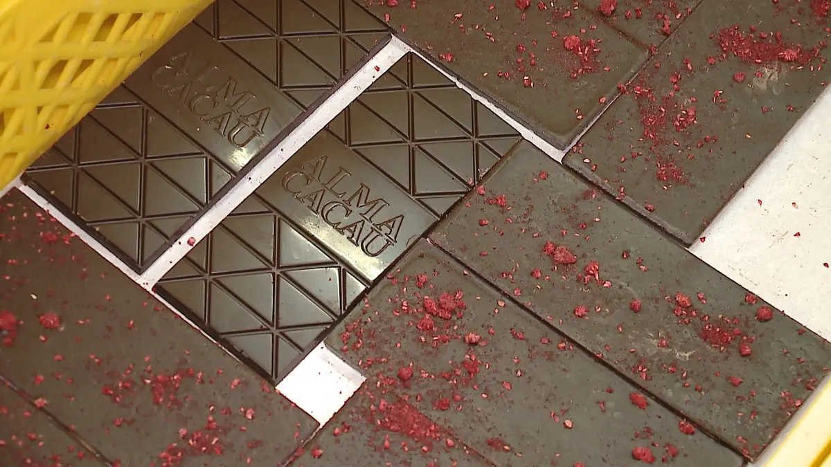 Além do projeto que vai das vagens de cacau ao chocolate, há outra linha doce que mistura ingredientes e dá nome a mais 100 referências diferentes. Tudo junto, dá forma a mais de meio milhão de tabletes e consolida a ligação da engenheira química que saiu do Brasil para Portugal e para Oliveira do Hospital.