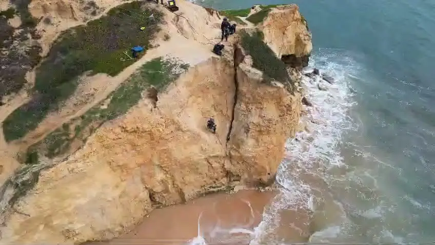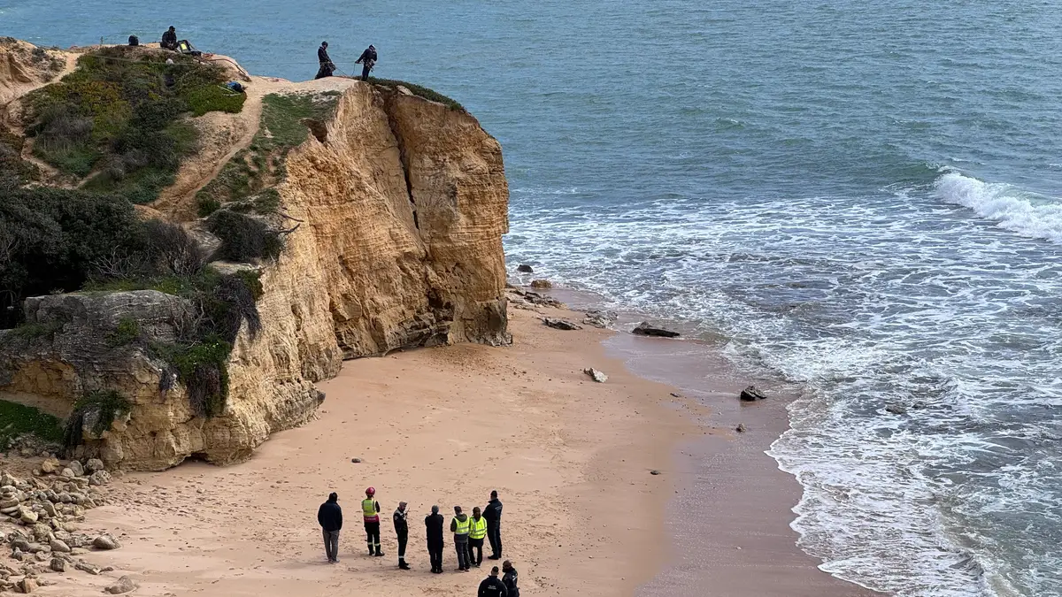 O difícil acesso exigiu a intervenção da unidade de emergência e proteção da GNR depois de, em janeiro, a corporação de bombeiros de Albufeira ter conseguido desmoronar de forma controlada um primeiro bloco.
