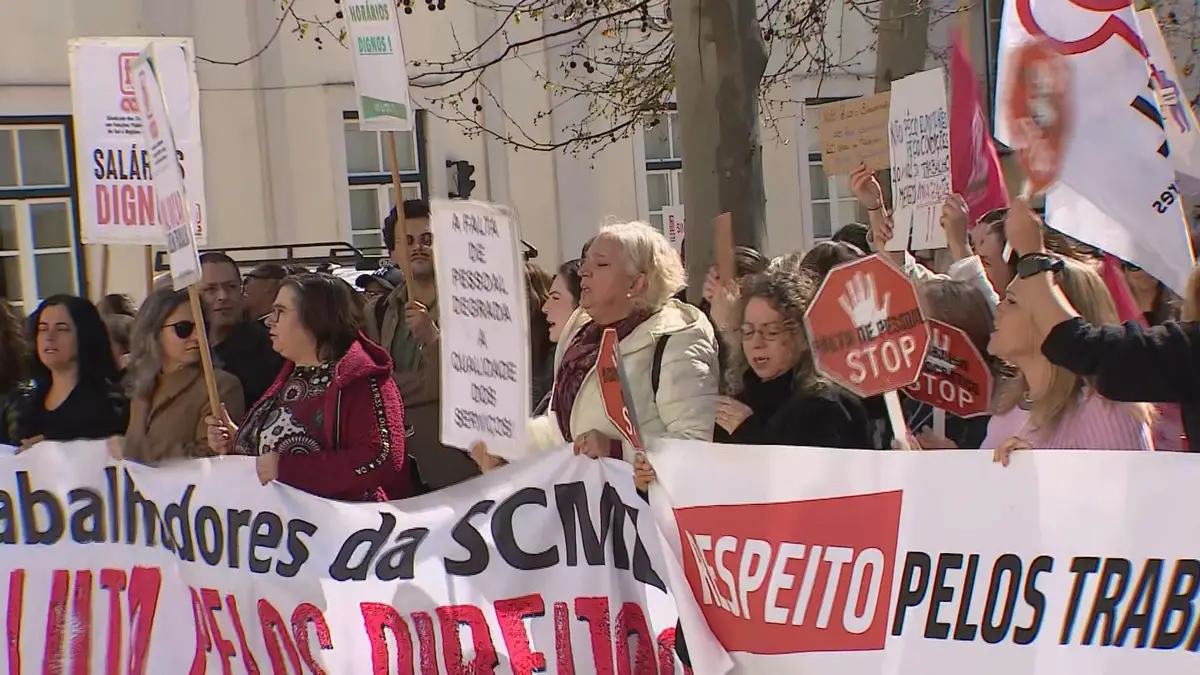 Sindicalistas e trabalhadores da Santa Casa da Misericórdia de Lisboa estão em greve e voltaram a protestar junto à sede da instituição. Exigem a subida de salários e o descongelamento da progressão na carreira.
