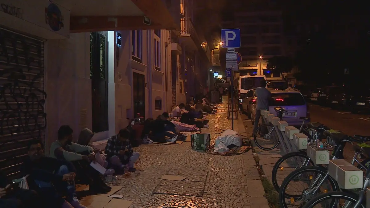 Mais de 100 pessoas passaram a noite junto às instalações da AIMA, nos Anjos, em Lisboa, para garantirem uma senha para renovar o pedido de residência. Para hoje havia 200 senhas de atendimento, que esgotaram às 8:30 da manhã.