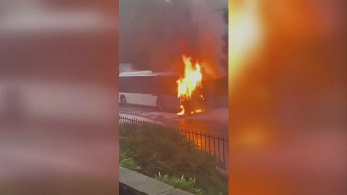 O incêndio começou poucos minutos após as 08:00. O autocarro transportava passageiros, mas não há indicação de feridos.